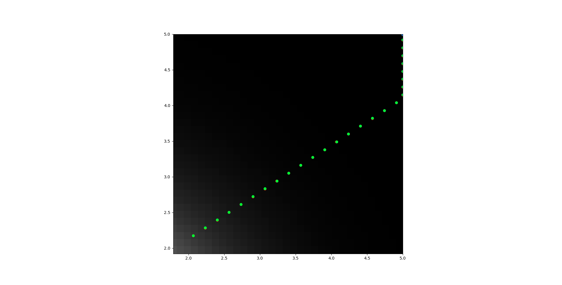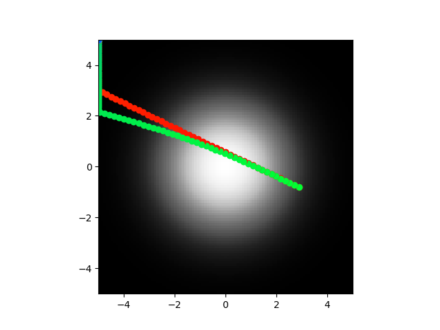 Ok so that above image is very zoomed in on the paths taken after I trained the biophysical parameters to minimize error between the resulting abstract parameters and those found in the paper. On the one hand, they paths are kind of close, at leas in the sense that they are both really highly localized. On the other hand, they are really bad because they don't center seek and are nowhere near the right values. Code here.